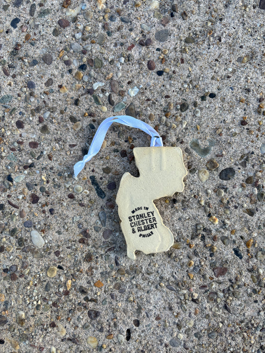 Check out our brand new and returning ornaments for 2025! Every ornament is handmade from white stoneware clay in our West Philly studio.